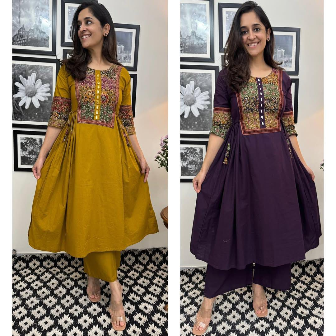 Graceful and rich in artisanal charm, the Handcrafted Embroidered Kurti Set is thoughtfully designed for women who appreciate traditional detailing with modern comfort. Made from premium breathable cotton fabric, this kurti set offers a soft, lightweight feel with a beautiful flare that moves effortlessly with you.