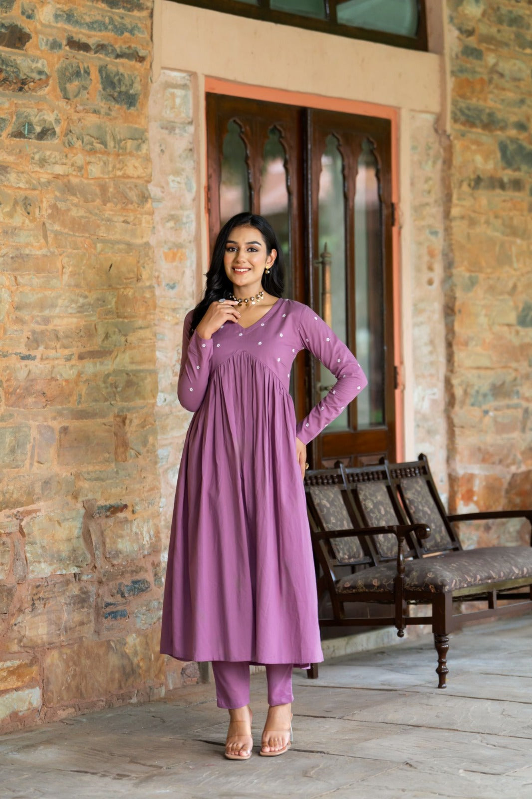 Flowy Floral Embroidered Anarkali Kurta Set