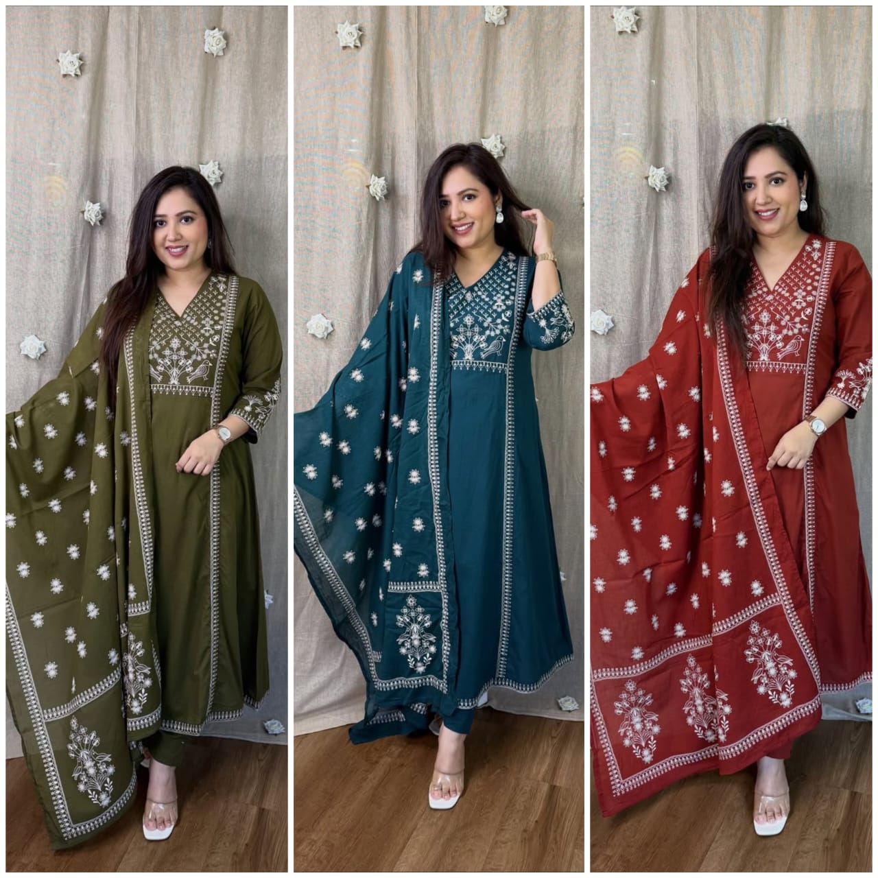TARANGINI Floral Embroidered Kurti Set