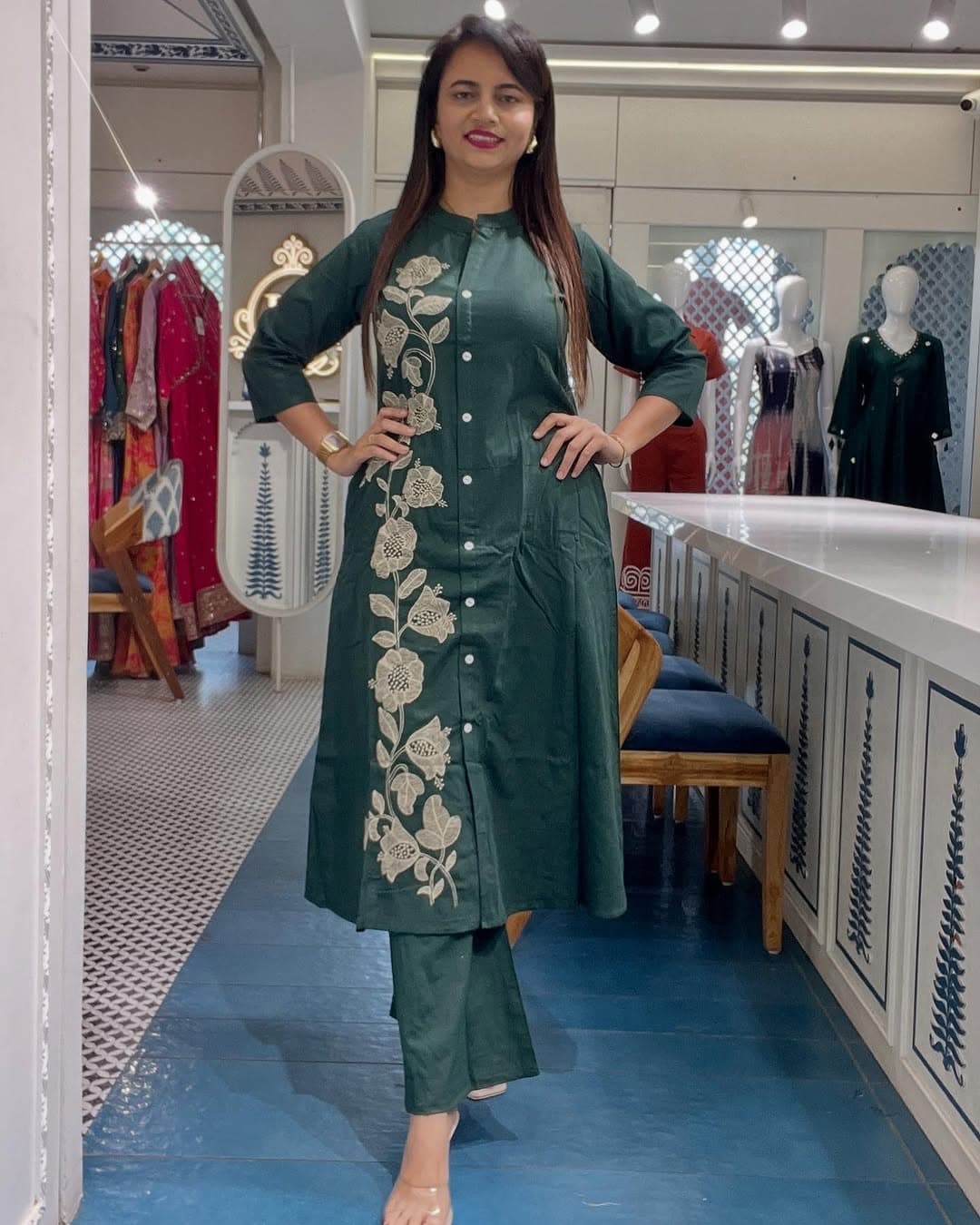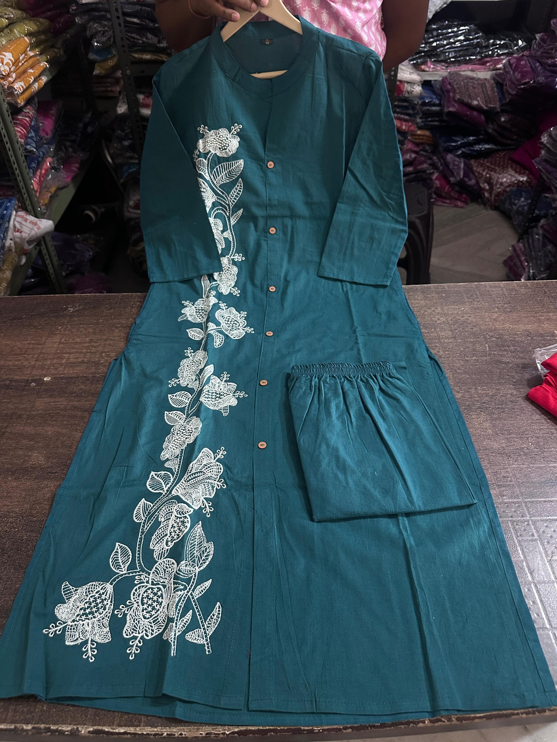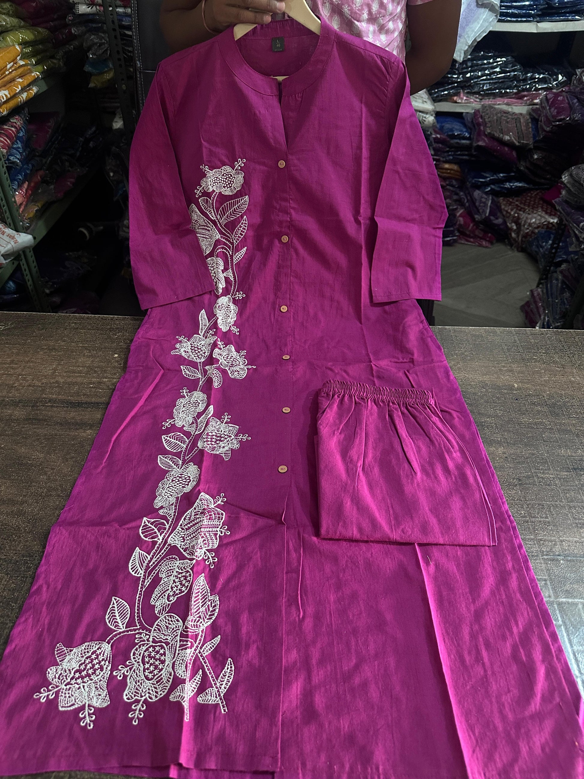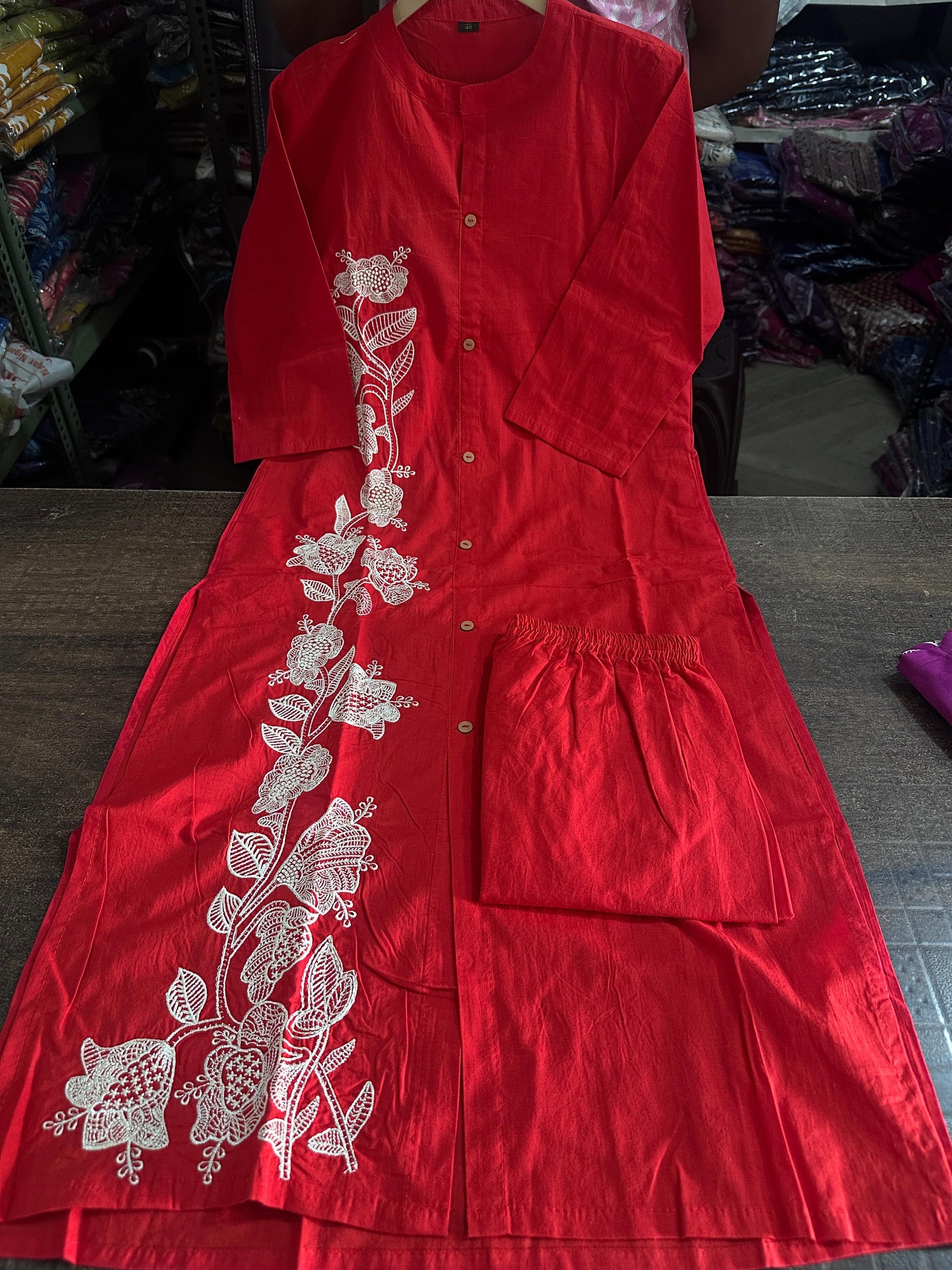 Embroidered Button-Down Cotton Kurta Pant Set